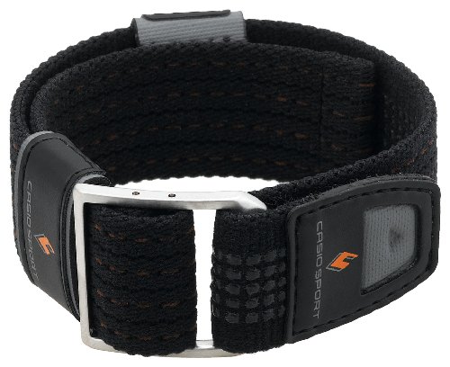 Featuring tough solar power, multi-band atomic timekeeping, and a digital compass, they don't call this watch the Pathfinder for nothing. This slim black men's watch from Casio features resin construction and a 56.9-millimeter case, and a black cloth band with orange inside. The light green-gray dial has a digital time display and a day and date calendar. Powered by digital quartz, the Pathfinder is also water resistant to 330 feet.